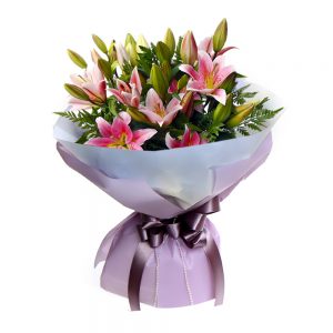 Experience the beauty and elegance of our Bouquet of Lilies. These exotic lilies are carefully selected for their top grade quality, ensuring vibrant colors and long-lasting blooms. Wrapped beautifully, this bouquet is perfect for any occasion, adding a touch of sophistication to any space.